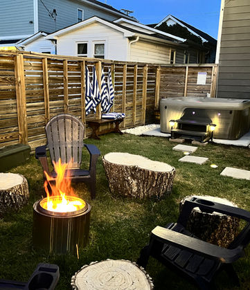 Step into the enchanting backyard of Underwood Manor, where every moment is designed to delight. Begin your day with a serene cup of coffee on the deck, sitting on new Acacia wood patio furniture. Indulge in the luxury of our 7-person premium hot tub, complete with jets and lighting. Engage in lively games of bocce ball by day and neon-lit corn hole at night, under the magical glow of bistro string lights. As evening falls, gather around the smokeless SoloStove bonfire, with unlimited firewood, and enjoy drinks or s'mores under the starry sky. For dinner, fire up the Weber premium charcoal BBQ grill, equipped with all the essentials, and savor the joy of cooking in this idyllic setting. With a private fenced-in yard, every corner of our outdoor space invites relaxation and connection, ensuring unforgettable memories at Underwood Manor.